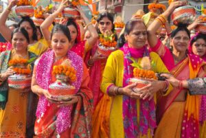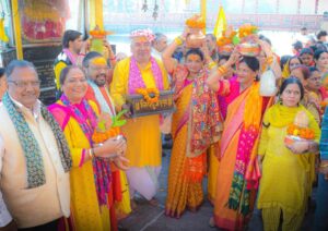 शिव मंदिर में विष्णु महायज्ञ और श्री भागवत कथा के शुभारंभ अवसर पर 101 महिलाओं ने नगर में निकाली भव्य शोभायात्रा