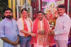 शारदीय नवरात्र पर्व शुभारंभ होने पर श्री दुर्गा मंदिर में विधिवत हुई पूजा-अर्चना,मां के भजनों पर देर रात तक झूमे श्रद्धालु
